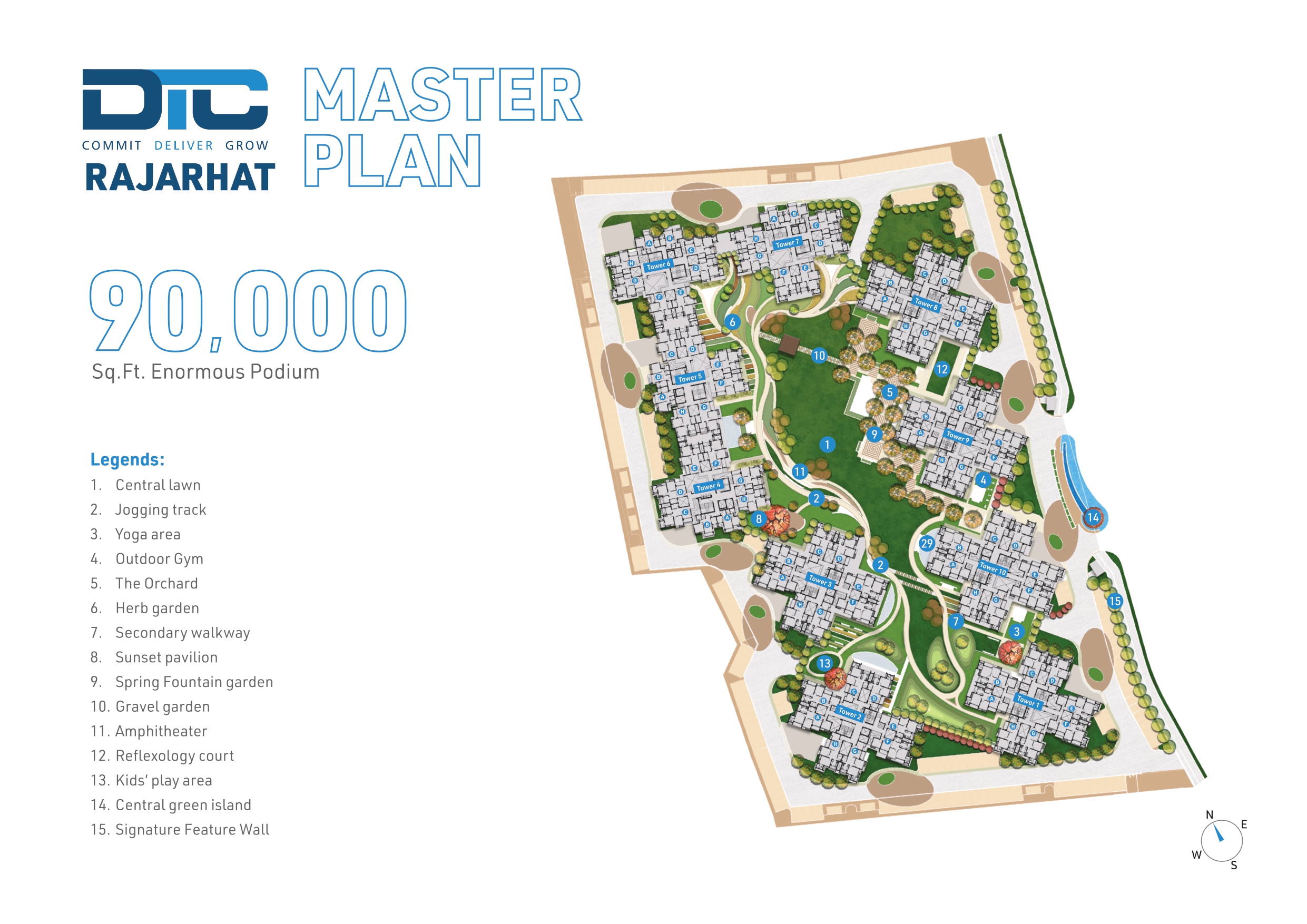 DTC Capital city Rajarhat is largest residential project with 10 towers of G+14. Dtc capital city has 2Bhk, 3Bhk apartments with starting size of 910 sqft Super built. DTC capital city has modern club house with all facilities and amenities at podium level. DTC Capital City has launched 3 towers tower 1,2,4 as on date. It has total 1142 apartments in phase 1. DTC Capital city has 70000 sqft club house with G+2 level which host all the amenities such as swimming pool, badminton court, gym etc.